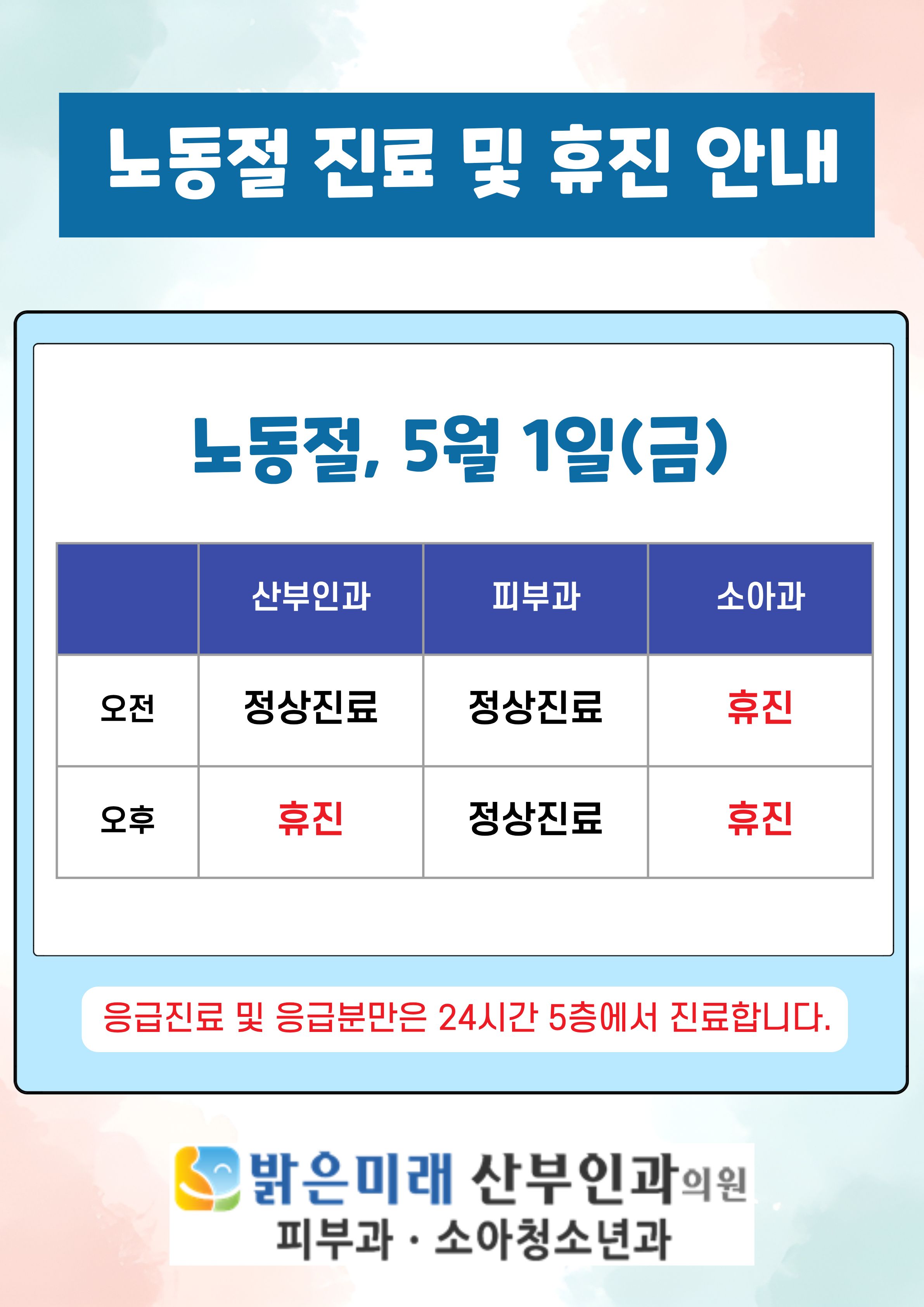 26년 5월 1일 노동절 진료 및 휴진 안내