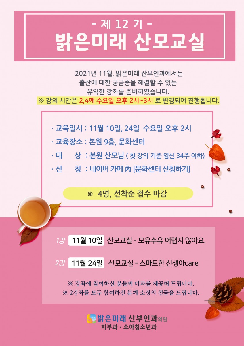 [마감] 11월 밝은미래 산모교실 접수 안내