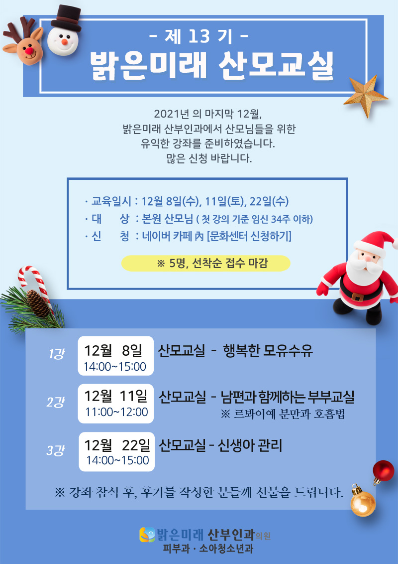 [산모교실 모집] 12월 밝은미래 산모교실 접수 안내