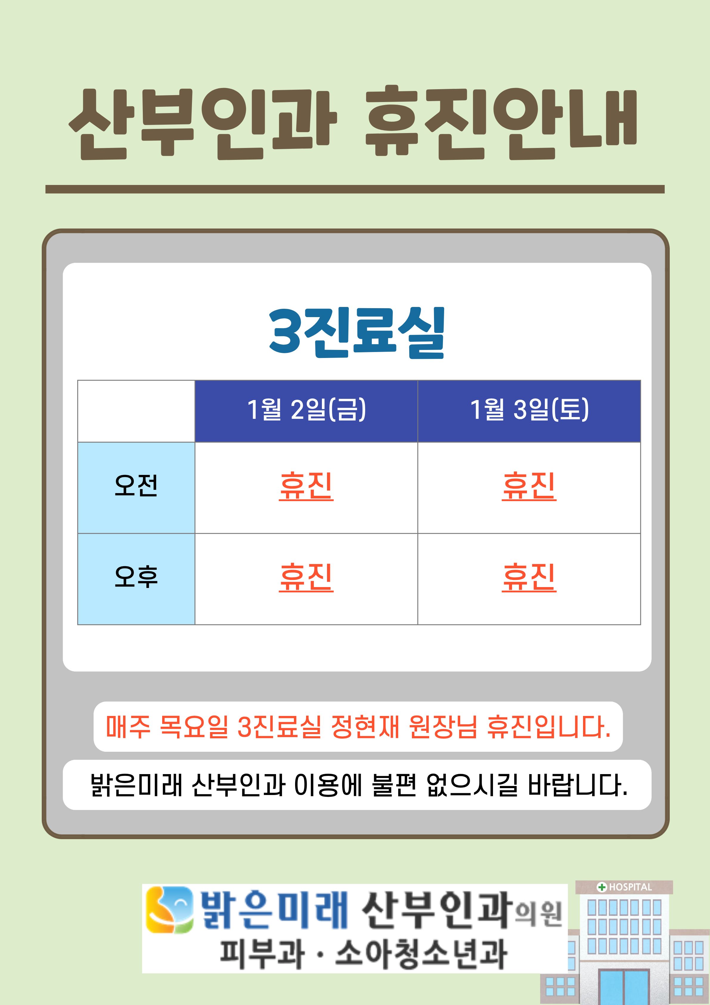 26년 1월 3진료실 휴진안내(2일,3일)