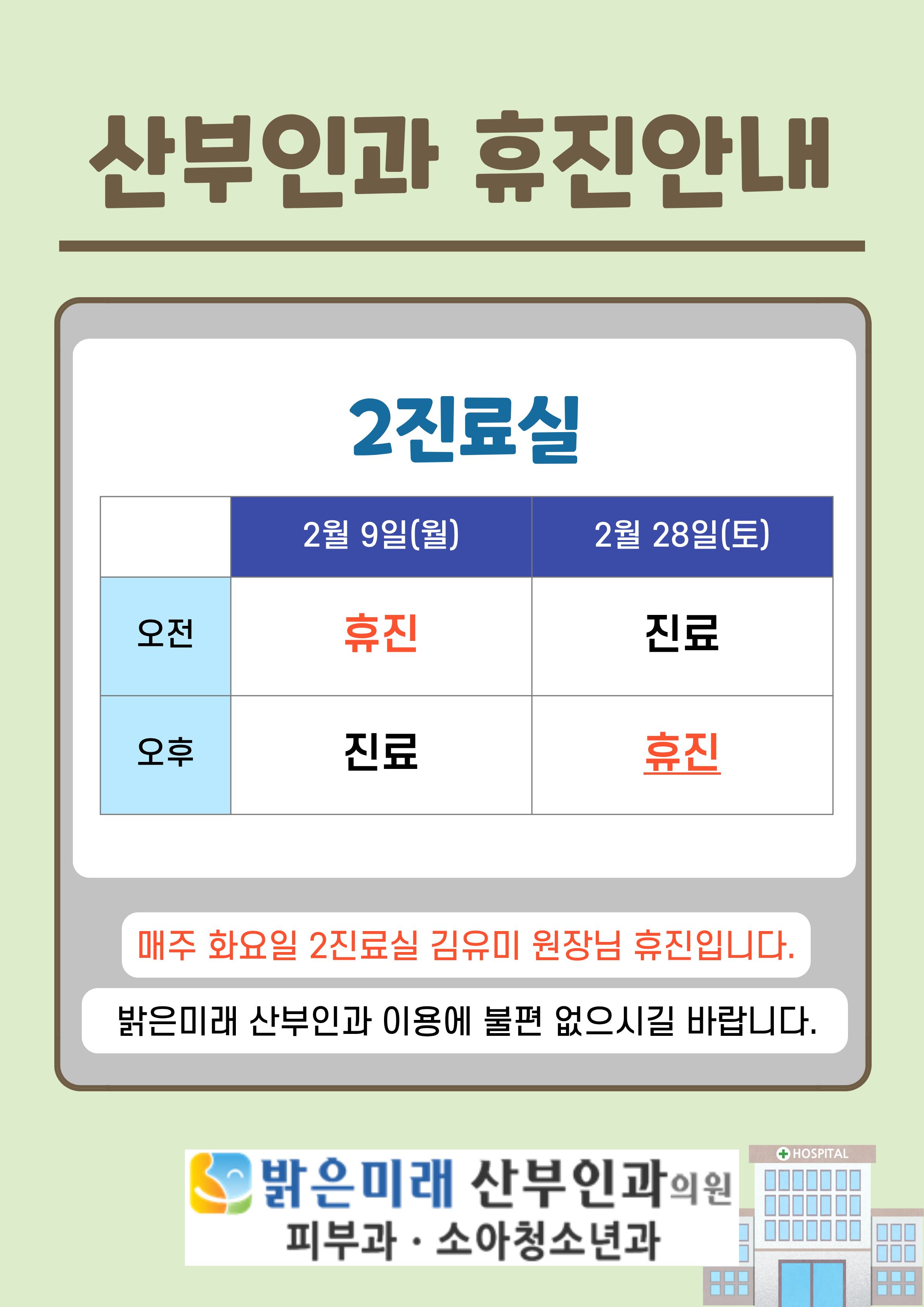 26년 2월 2진료실 휴진안내(9일, 28일)