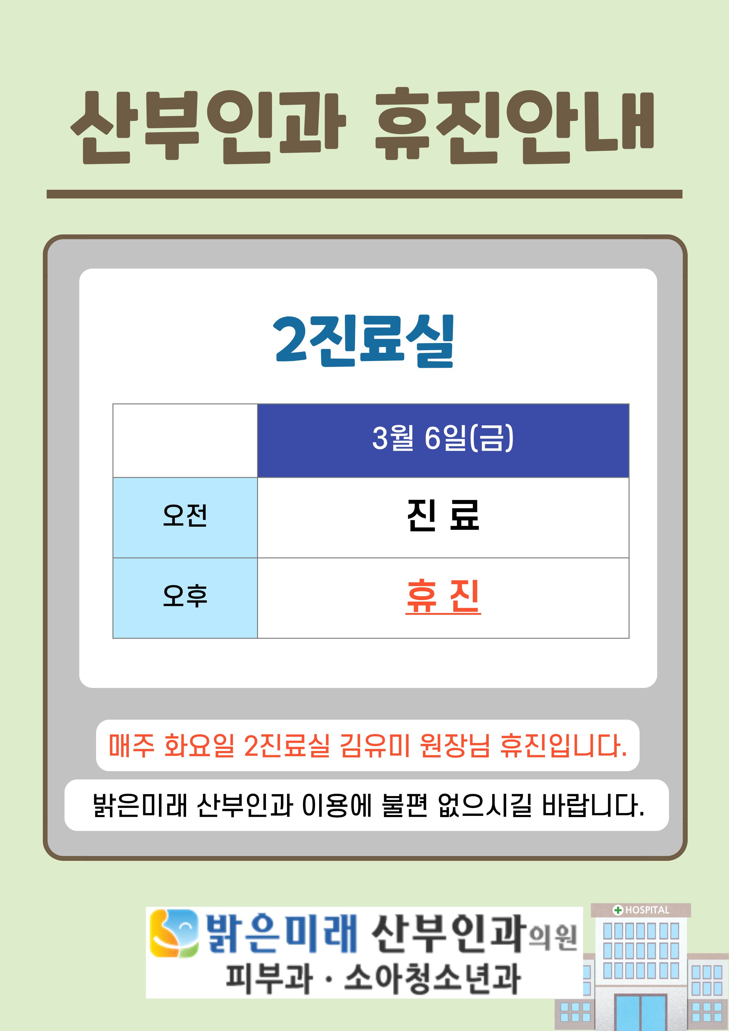 26년 3월, 2진료실 휴진안내(6일 오후)