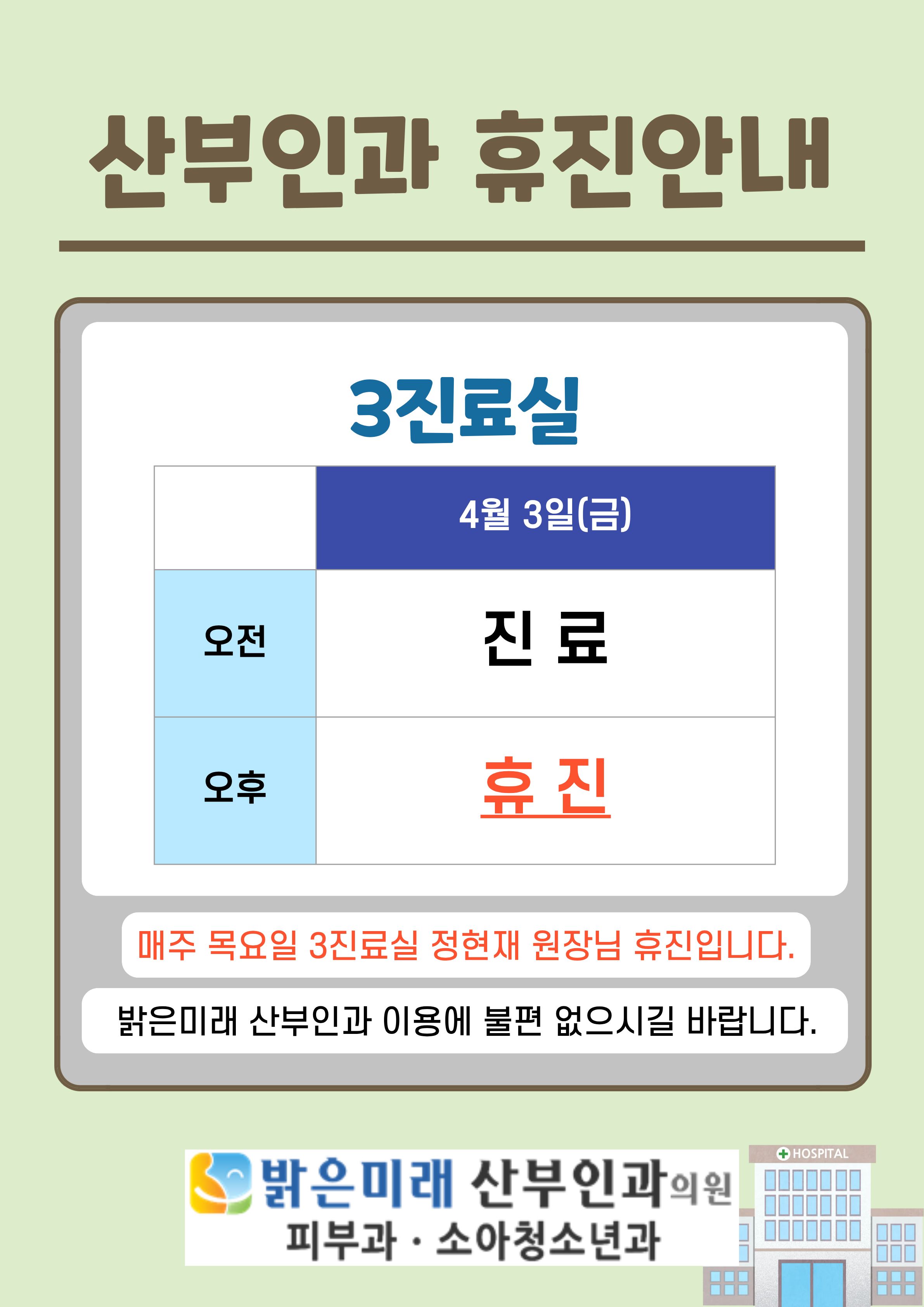 26년 4월 3진료실 휴진안내(3일, 오후)
