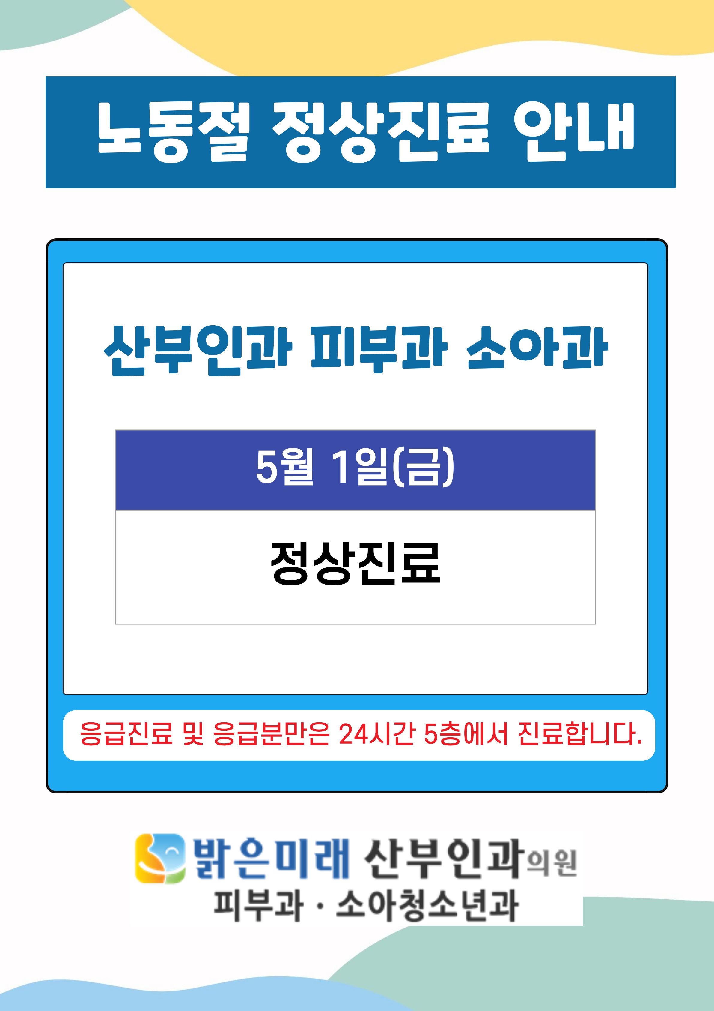 26년 5월 1일 노동절 정상진료 안내